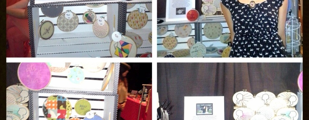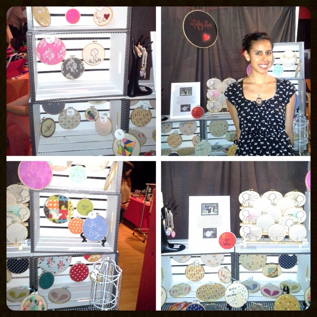 I did have a few beefs with the venue; namely, my booth space was so incredibly dark that you really could not see the colors of my embroidered pretties. (The photos above have been heavily brightened.) This killed me! I take painstakingly care over selecting just the right shade of a particular color when creating a piece, so the fact that all 6 shades of purple on an ombre hoop looked like only one shade of purple was extremely frustrating. I was not happy. The closer a customer stood to my display, the greater their cast shadow became. It was torture. And I’m sure my mom was tired of hearing me complain about it.