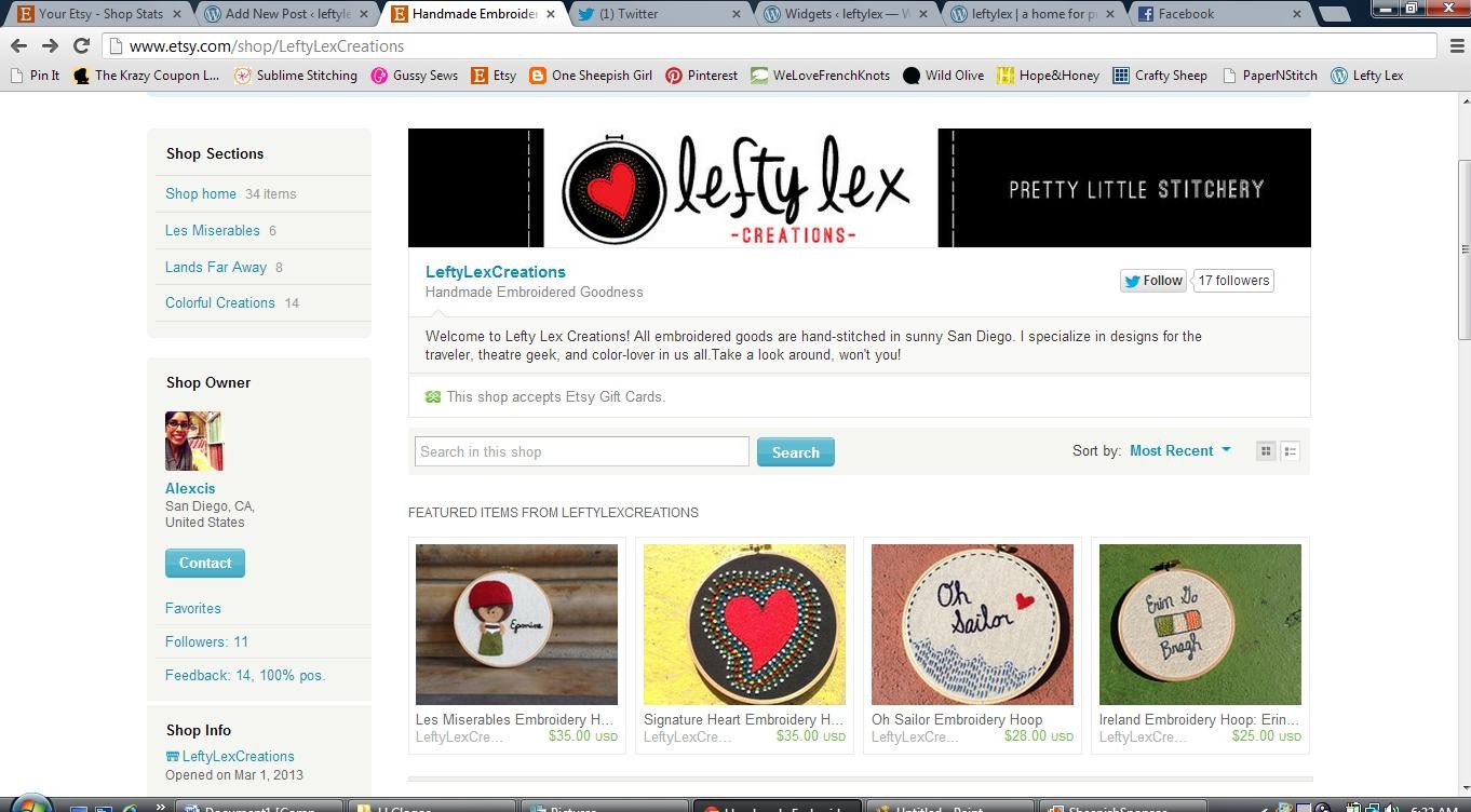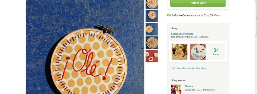 Who I am and why I do! I’m Alexcis and I’m the owner of Lefty Lex Creations. I became interested in handmade items about five years ago and began putting my 8th grade Home Ec sewing skills to use making baby quilts for friends. I loved the creative process and being able to give something that I had personally made, not store-bought, but had to put that creativity on hold for a few years while I completed grad school. Once graduation was over my poor brain was dying for a creative release and I became consumed with sewing, knitting, and (most recently and fervently) hand embroidery! Since then I have not been seen without some form of craft in my hand. I stitch whenever and wherever I possibly can; I’m obsessed!