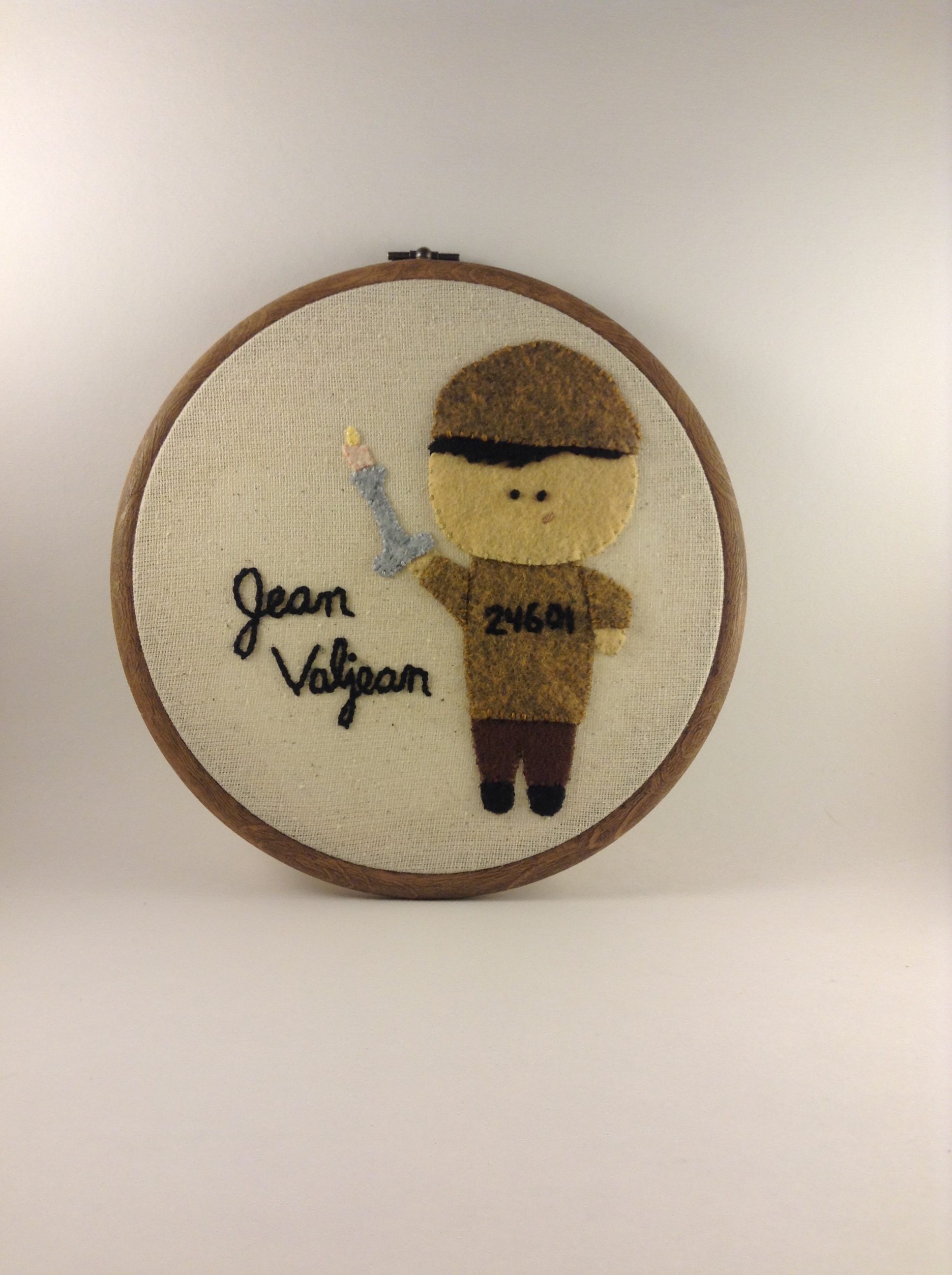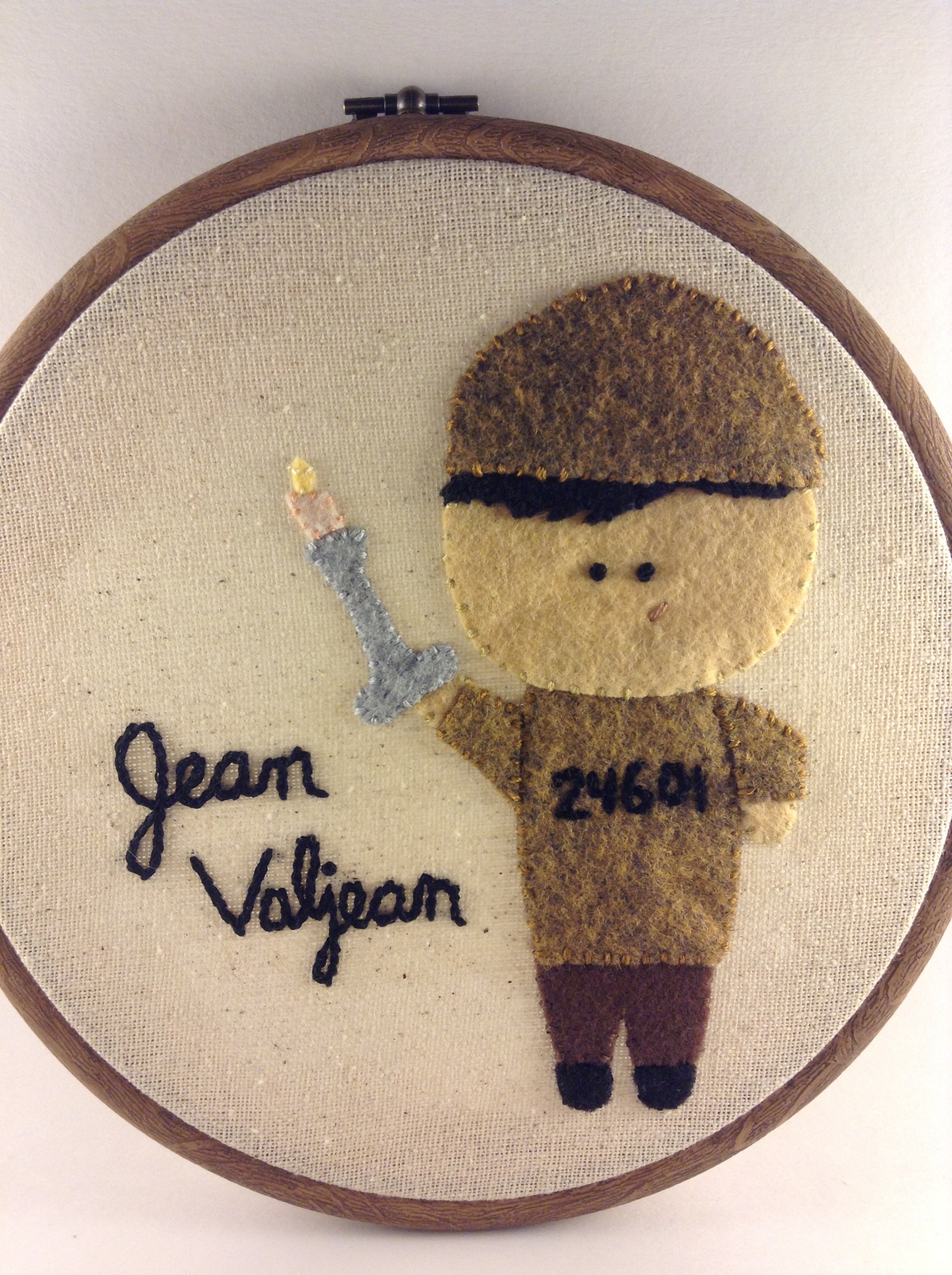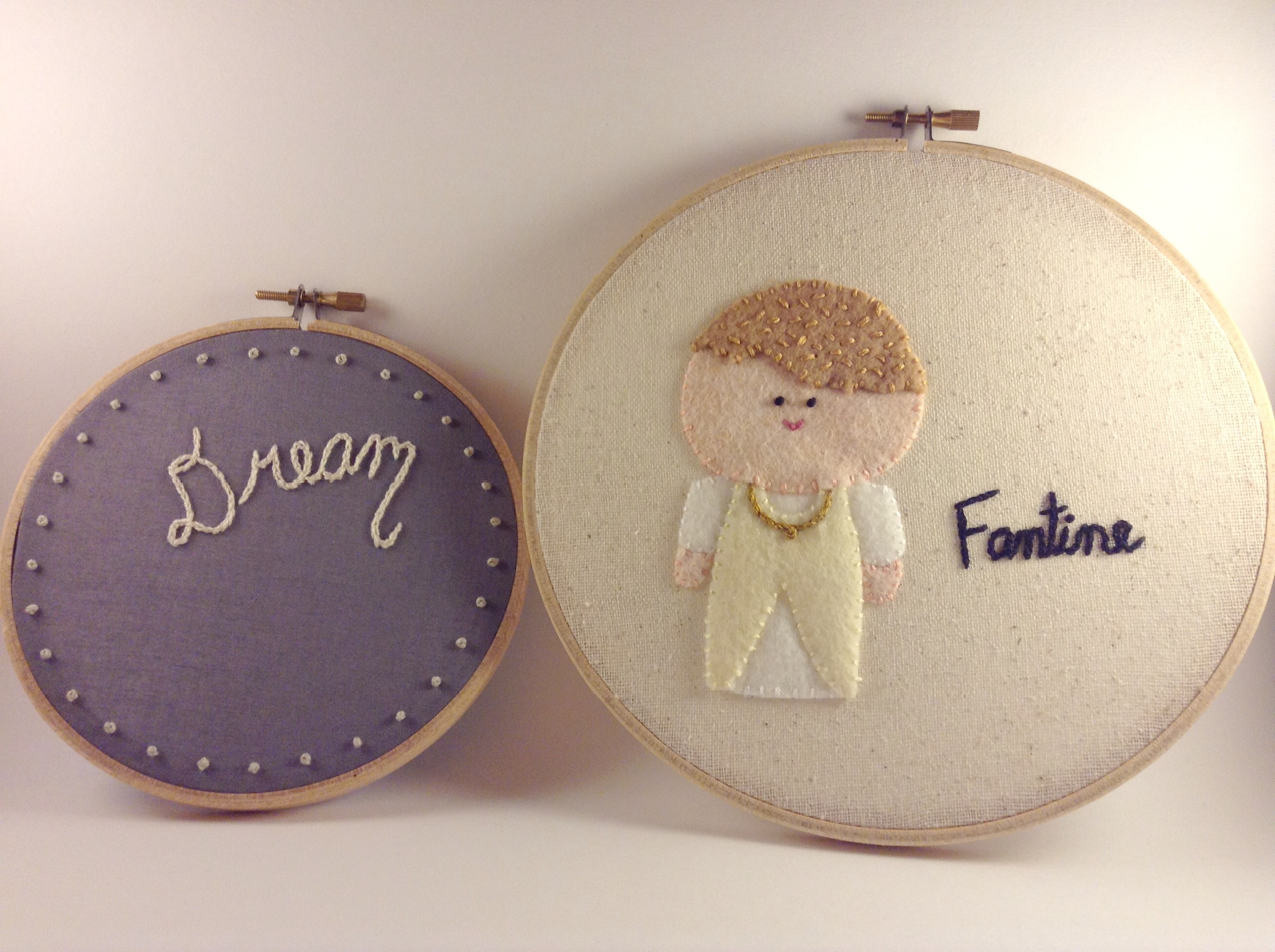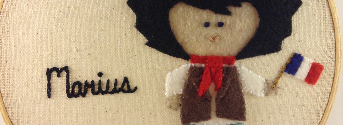 At long last, I am ready to reveal my first musical collection! I have had so much fun creating this line and hope you enjoy it as much as I do. We will start our introduction to the Les Mis felties with sweet, sad, love-struck Eponine. She is my favorite character; I think that this is largely in part to the fact that both Lea Salonga and Samantha Barks have played Eponine on the stage (and film) flawlessly. Do yourself a favor, watch both clips below and judge for yourself who played the better Eponine. (There is no wrong answer here!). While I love, love, love Lea (and have met her twice), I am inclined to say that I prefer Samantha a tad more when it comes to the Eponine role. Eponine’s two highlighted songs are On My Own and A Little Fall of Rain; I spared you and am sharing the Lea Salonga/Michael Ball version of the later as the only Youtube clip of Samantha I could find was with Nick Jonas and I do not want your ears to start bleeding! Now have a listen.