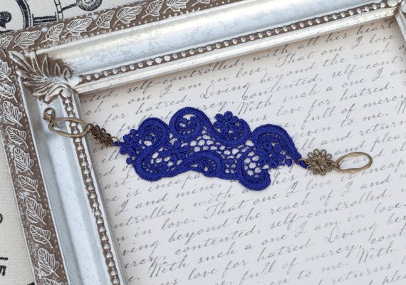 Navy blue lace embroidered floral tulle net trim 2 yards BL085 Bridesmaid jewelry, Purple Blue lace bracelet in antique bronze, bridal bracelet